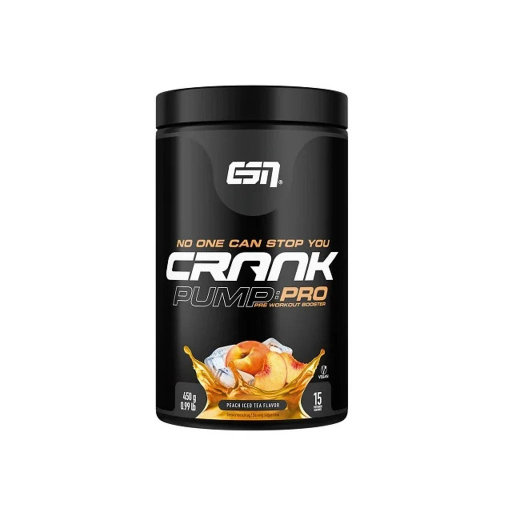 ESN Crank Pump Pro ist ein Nahrungsergaenzungsmittel in Pulverform mit Aminosaeuren, Pflanzenextrakten, Elektrolyten und Vitaminen. Das Produkt enthaelt kein Koffein und dient zur Ergaenzung der taeglichen Ernaehrung im Rahmen einer ausgewogenen Ernaehrung.