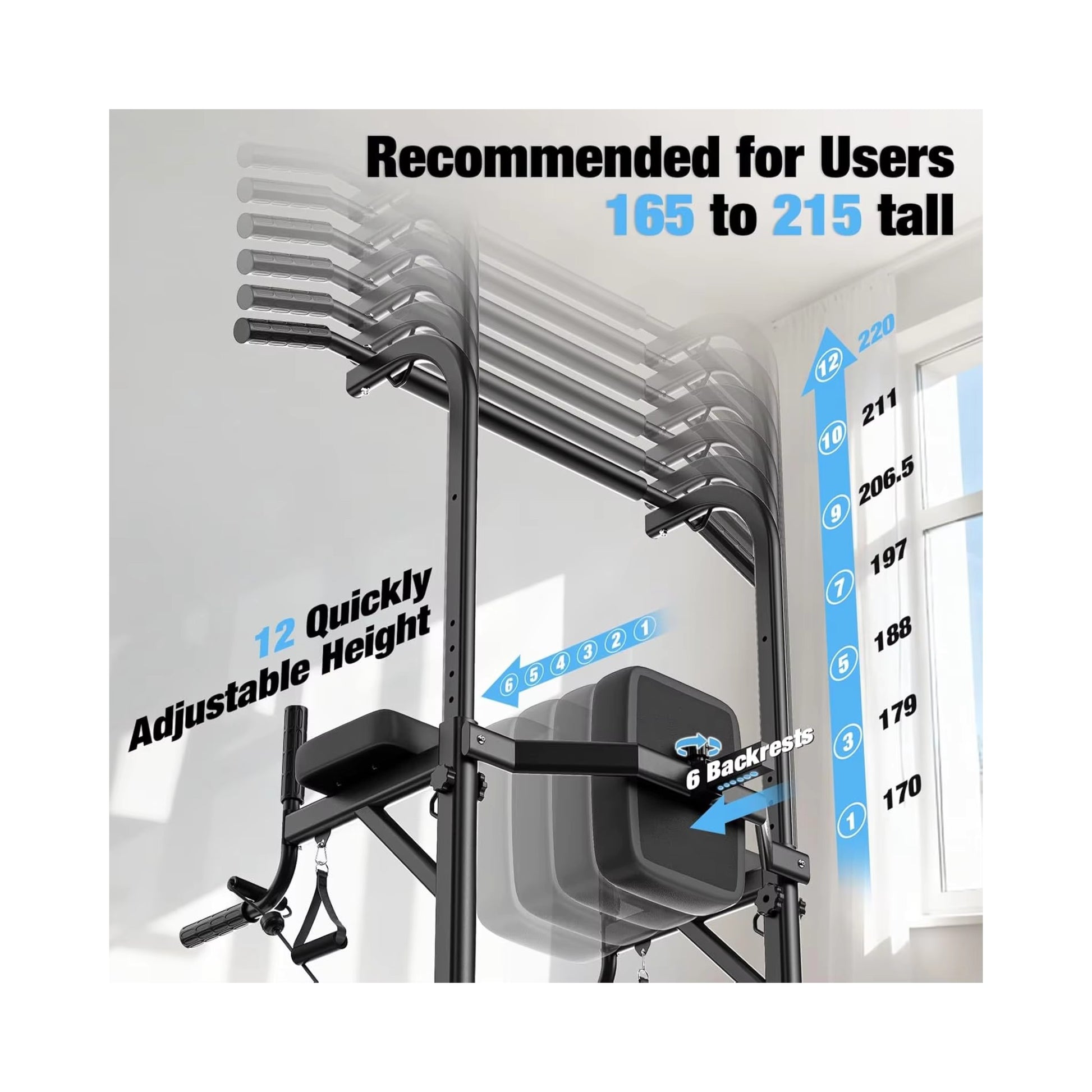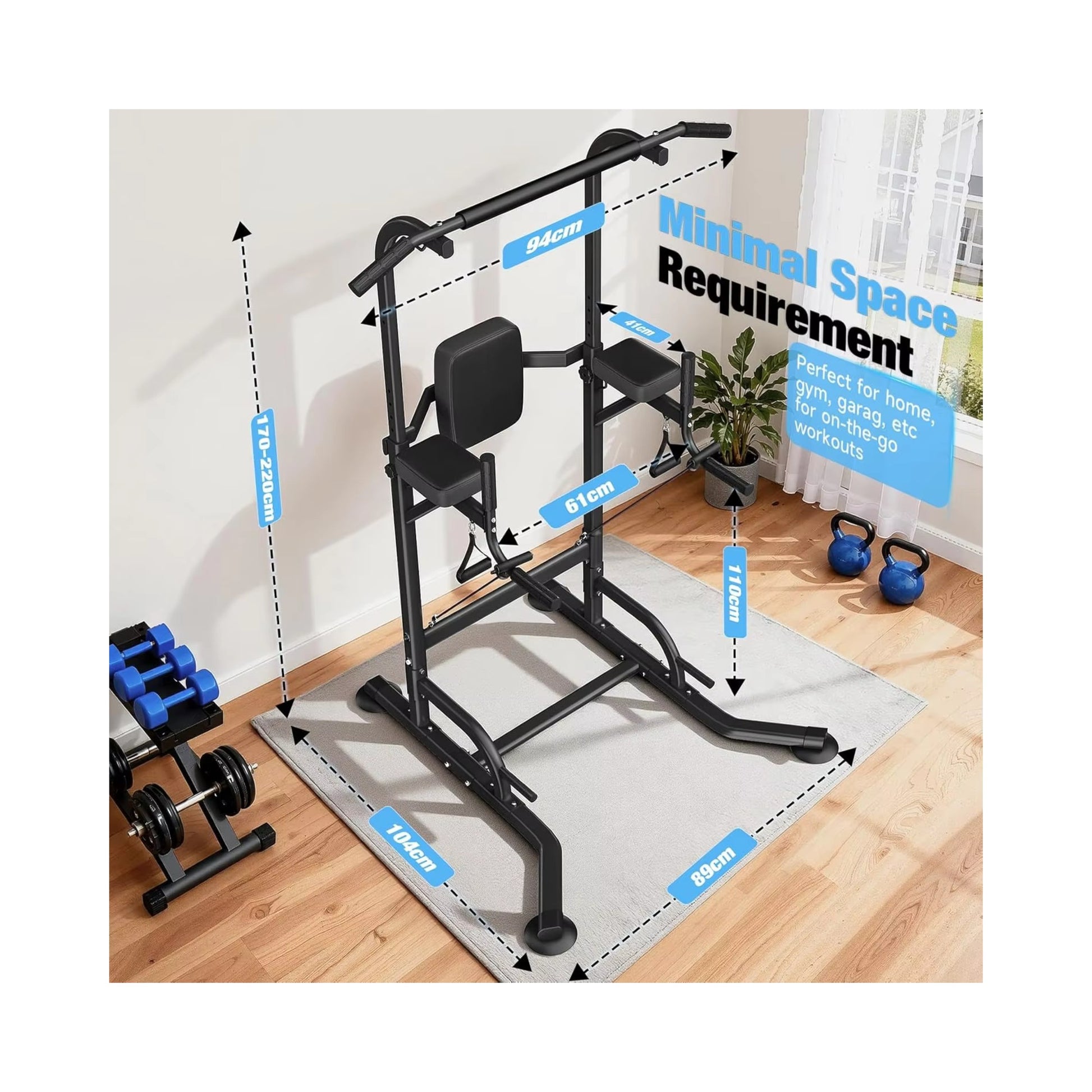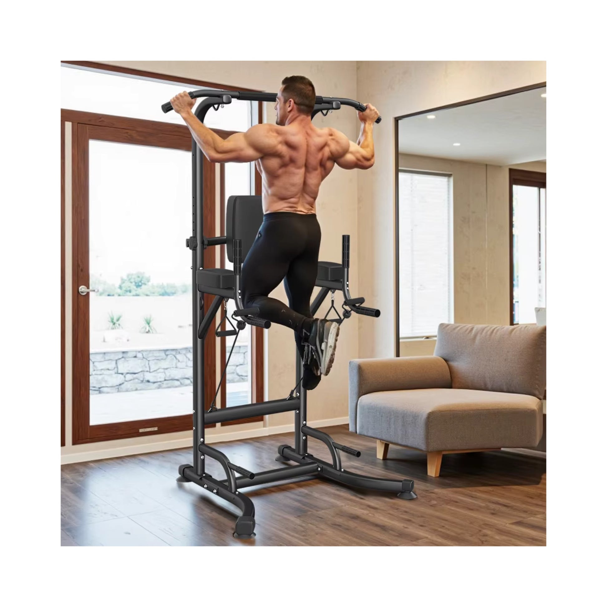 Kompaktes Design, hohe Stabilität und vielseitige Trainingsmöglichkeiten machen die Power Tower zur idealen Lösung für dein Zuhause.