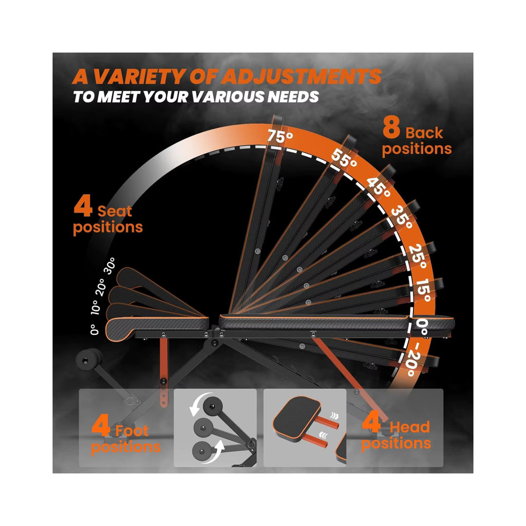 angepasst werden. Nach dem Training lässt sich die Bank platzsparend zusammenklappen.